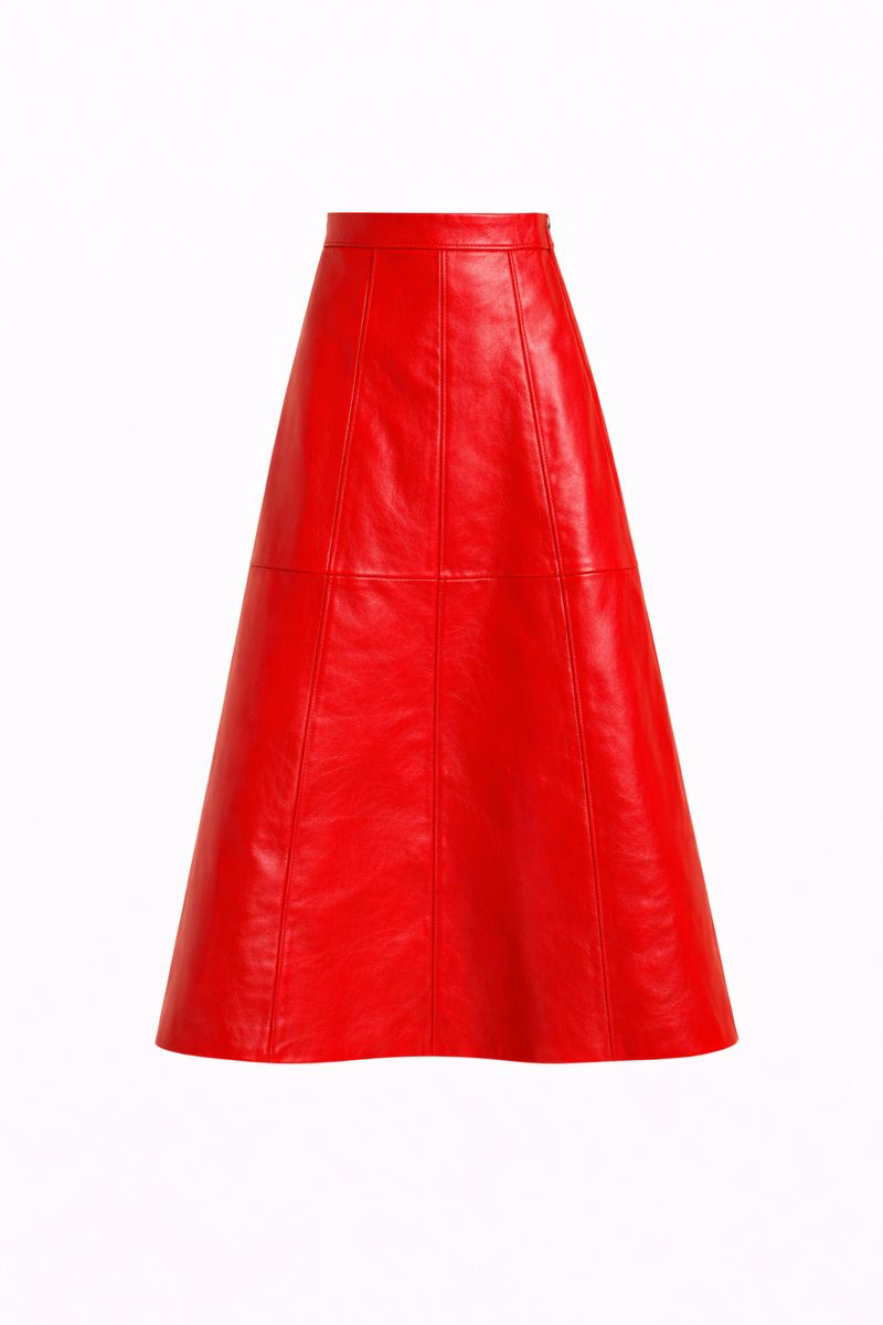 Mid-calf leather skirt with an A-line silhouette.