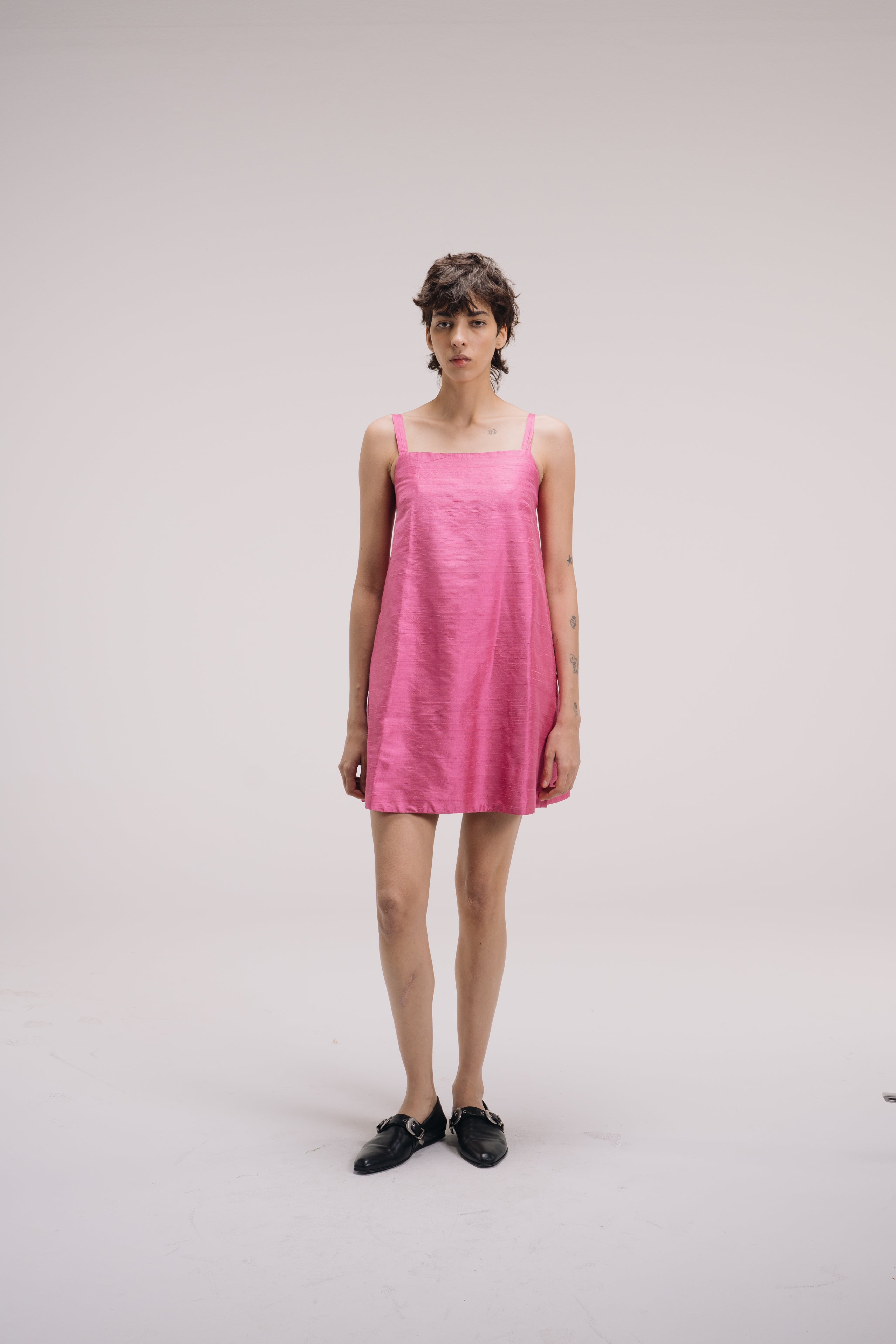 Alice Silk Shantung Mini A line Dress - Dark Barbie
