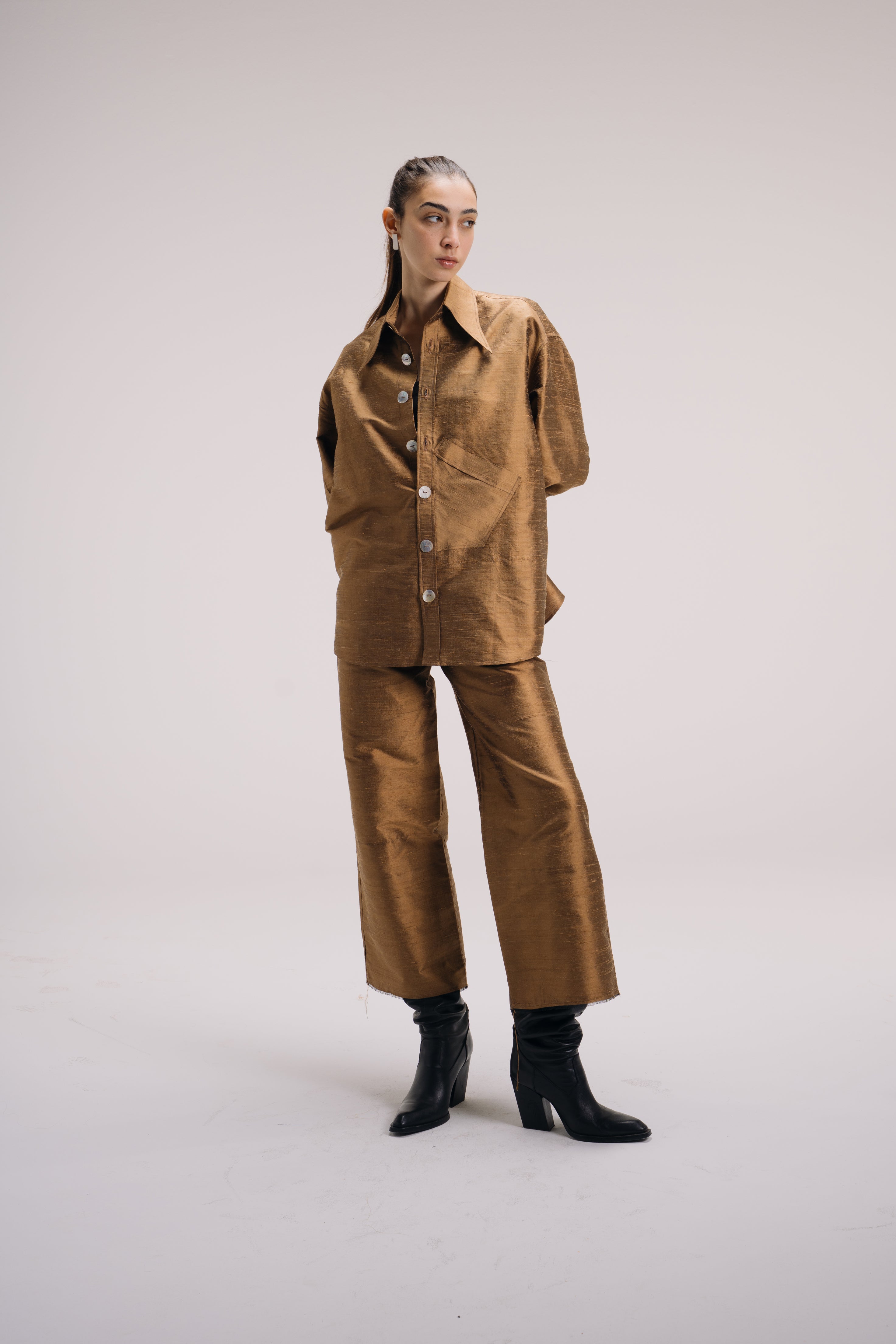 Introducing our IRA pants cut from 100% shantung silk, combining structured tailoring with a relaxed leg shape.
