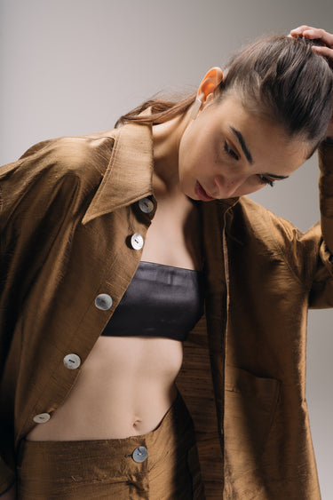 Ellie Silk Shantung Shirt - Bronze