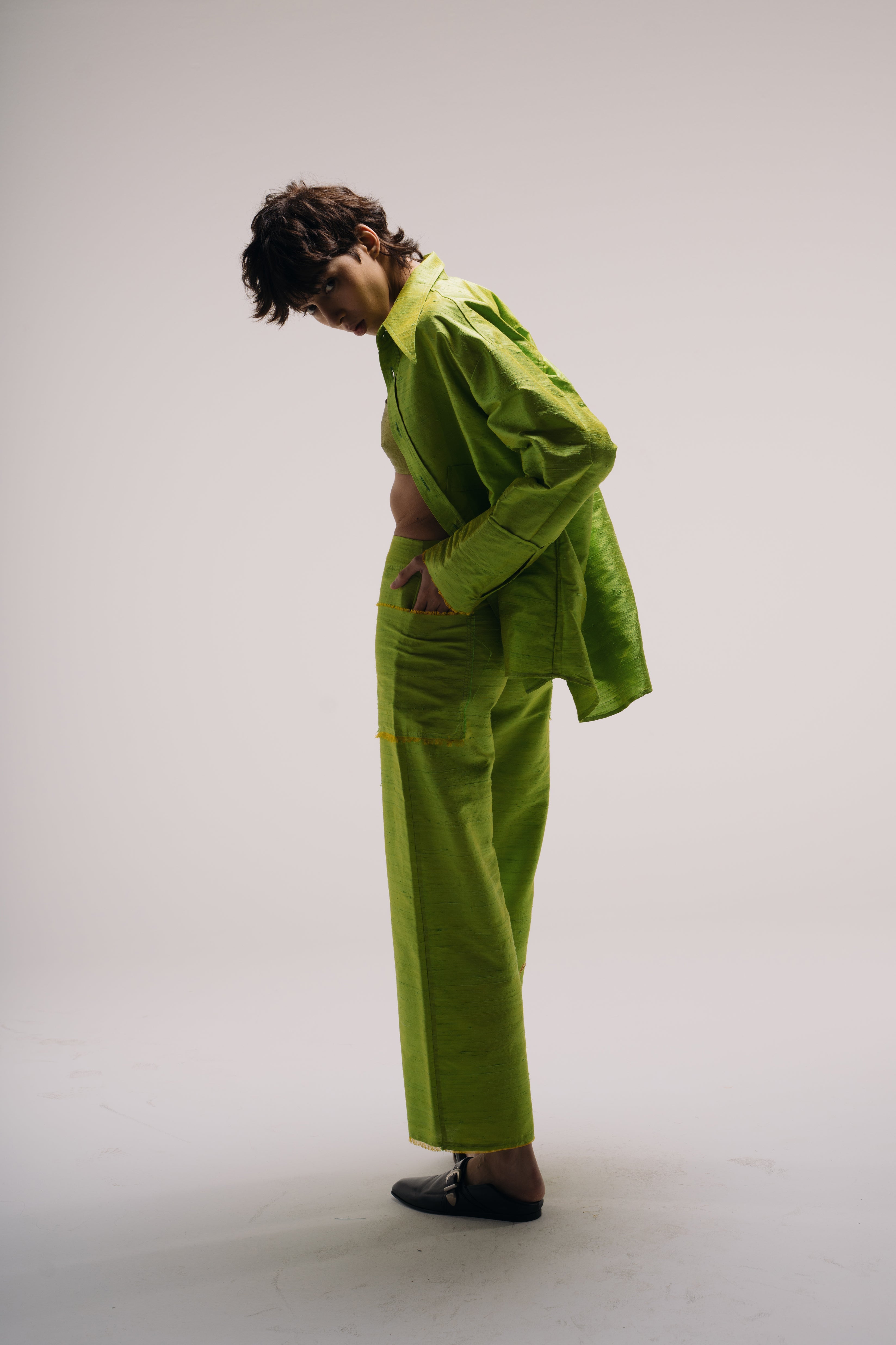 Introducing our IRA pants cut from 100% shantung silk, combining structured tailoring with a relaxed leg shape.
